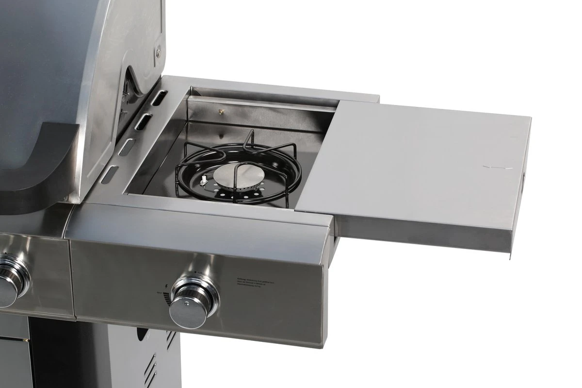 – Zijtafels: RVS, met een schuifklep voor de zijbranders