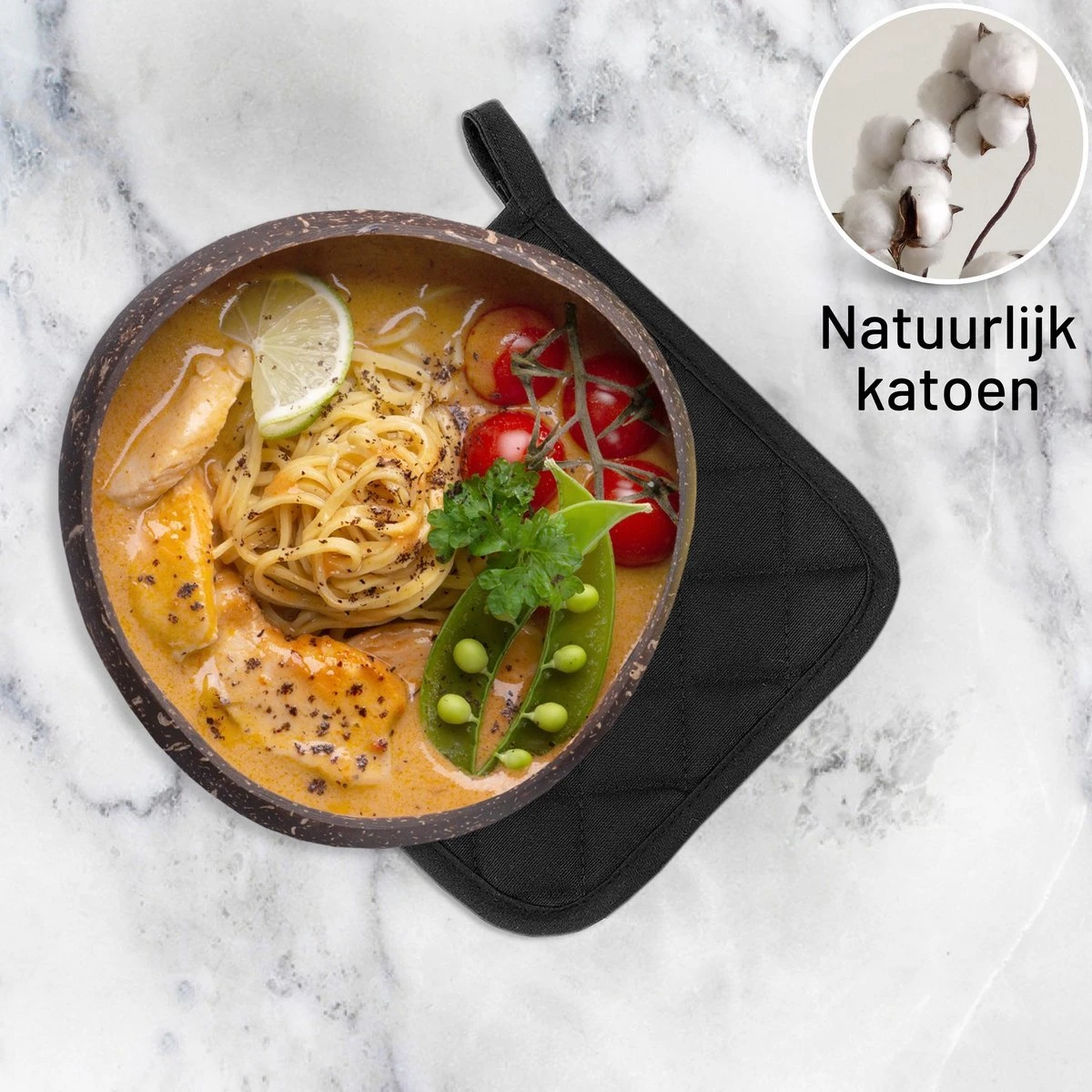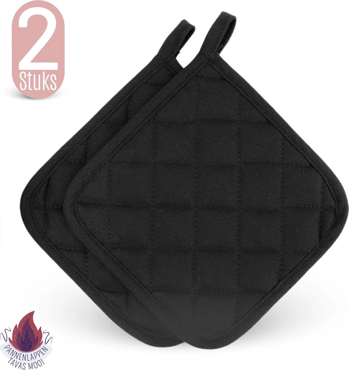 Merkloos Tavas Dream Hittebestendige Pannenlappen | 2 Stuks | Katoen, Thermolite | Tot 220°C | Zwart